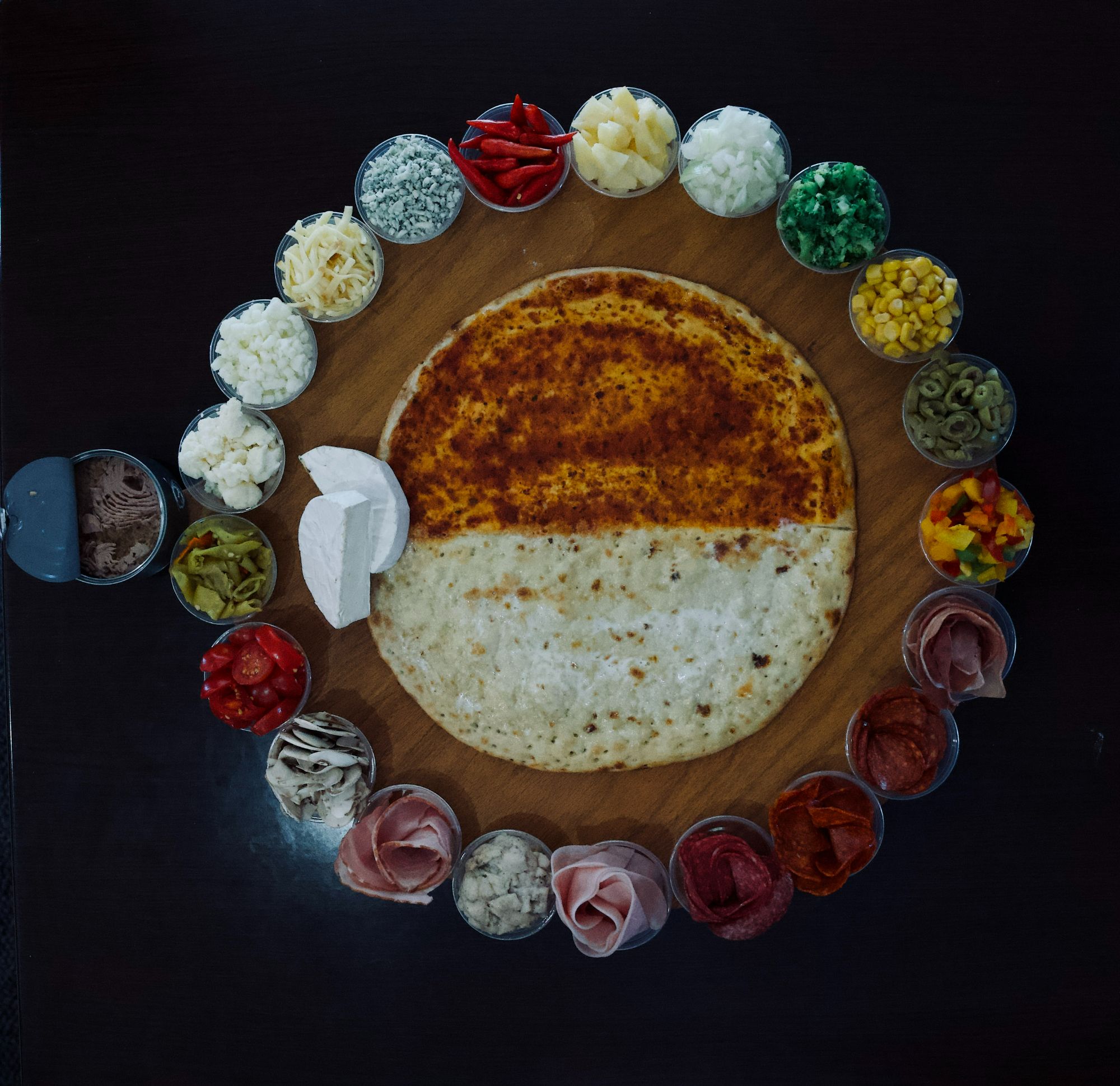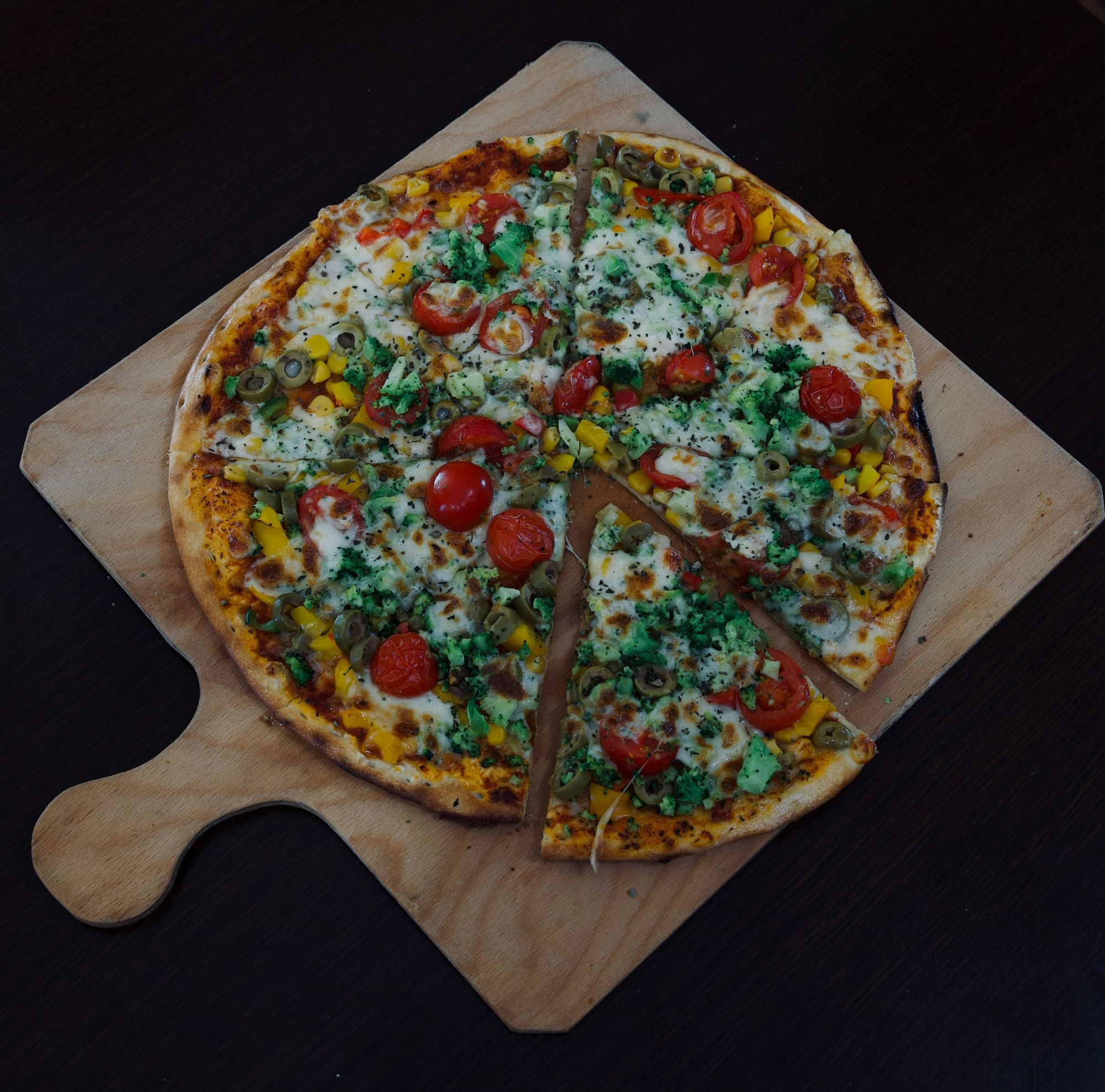 550g, tomato, mozzarella, brokolica, kukurica, bazalka, cherry paradajky, paprika, olivy -