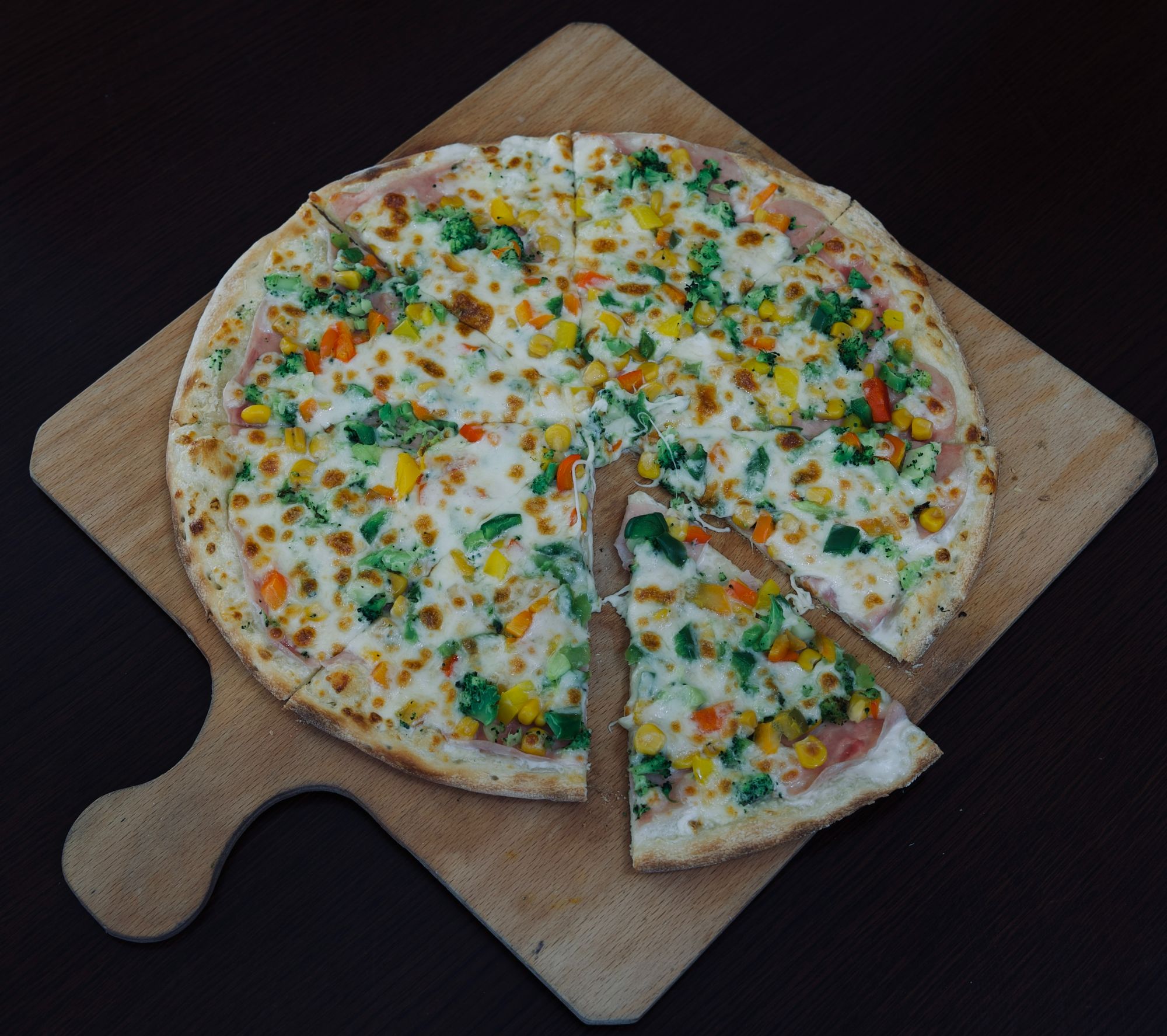550g, smotanový základ, mozzarella, šunka, paprika, kukurica, brokolica